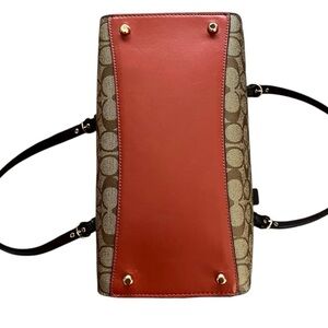 Coach Kleo Orange Suede Signature Canvas Logo Brown Zipper Tote Carryall Bag