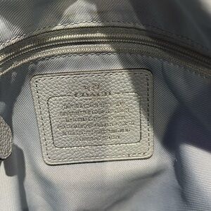 Chic Coach shoulder bag in light blue leather. Features a spacious interior and elegant design. Perfect for daily use.please see pictures for details and flaws ,has a minor ink stain as you can see in pictures
