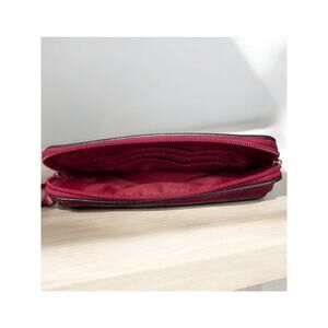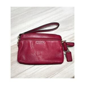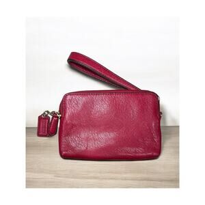 This Coach Madison Leather Double Zip Wristlet is such a cute accessory! Featuring smooth red leather with two zip compartments, this style would look great with a variety of Coach bags and styles. If you love and appreciate Coach style and quality, you need this adorable wristlet in your collection!