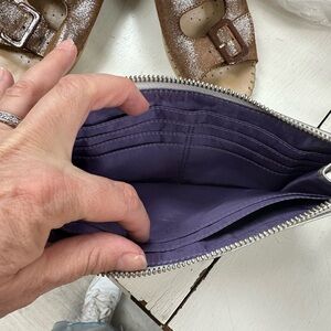 Coach Metallic Silver & Blue Patchwork Wristlet Clutch