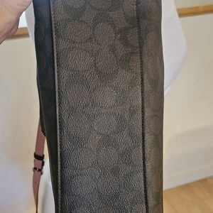 Chic Coach Mia convertible shoulder/crossbody bag in chocolate brown signature Coach jacquard with gold accents. Perfect for everyday use, work, or formal events. Stylish and functional design.