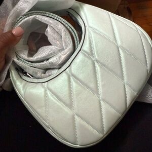 Stylish quilted design. Mint green color. Adjustable strap. Silver hardware accents. Perfect for everyday use.