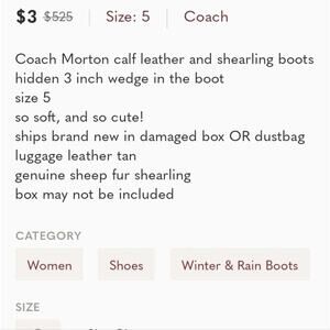 Coach Morton calf leather and sheep fur shearling boots size 5 new!!!!