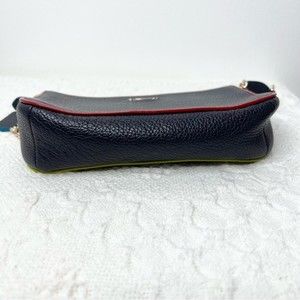 Coach Nolita bag. Features gold chain strap. Accented with red trim and blue details.