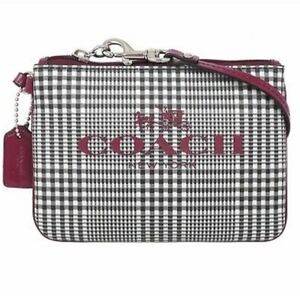Coach Peyton Burgundy Black White Glen Plaid Coated Canvas Wristlet