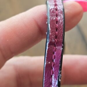Includes an unbranded black leather wristlet strap with silvertone hardware.