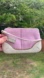 Stylish and elegant, this Coach wristlet features a beautiful pink and white design with a touch of gold around the piping. Leather strap and hang tag. Perfect for summer!