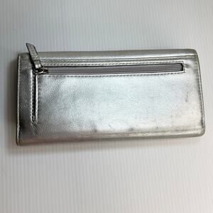 Coach Pleated Silver Metallic Leather Full Size Trifold Checkbook Wallet. See photos, there is a pen mark on inner flap right.