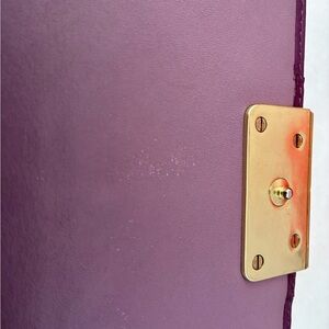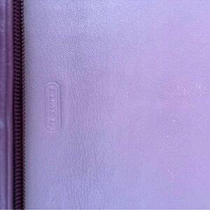 Stylish Coach wallet in plum leather. Features a gold clasp for secure closure.