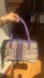 Stylish Coach shoulder bag with signature pattern. Features purple accents and durable handles. Ideal for everyday use.