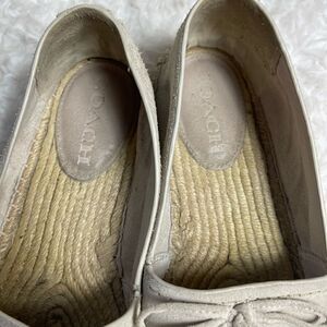 Coach Rae leather suede Beige Slip On Espadrilles Shoes front bow accent SZ8B