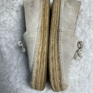 Coach Rae leather suede Beige Slip On Espadrilles Shoes .Front bow accent SZ8B.Pre owned in good used condition signs of wear on the suede has some wear marks see all pictures as they are part of the description.