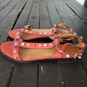 Coach Sadie Coral Orange Leather Sandals Women's 8.5 Studded Colorful