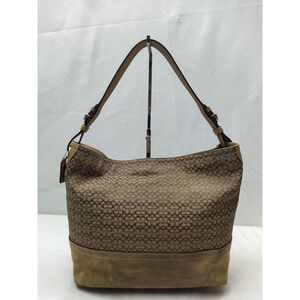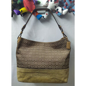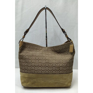 Coach Signature Brown Canvas Suede Hobo Shoulder Bag