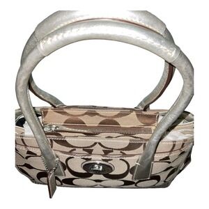 Coach Signature Hampton Madeline Handbag #A0873-11557 Khaki Silver Purse