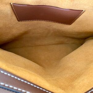 Coach Rogue In Signature Textile Jacquard is a stylish and versatile satchel/top handle bag designed for women. This medium-sized bag features a square shape with a zip closure and brown leather double handles, making it suitable for casual, formal, workwear, and business occasions. The exterior is crafted from signature textile jacquard, glovetanned leather, and suede in a cocoa burnished amber color, accented with studded, button, strap, and zipper details. The interior is lined with canvas and suede, with inner pockets, bottom studs, and an adjustable cross-body strap for added convenience. This designer bag from the Coach Rogue collection is a must-have for those looking for a luxurious and practical accessory. Bag measures 12 1/4 side to side, 9 3/4 in height, 6 inches deep and the short handle drop is 3 1/2 inches. Comes with double straps and a heavy leather shoulder strap. Plastic is still on the zippers. Only used 2 times. Comes from pet free and smoke free home.