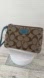 Coach Signature Tan/Brown Canvas & Teal Leather Trim Wristlet