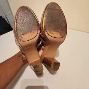 Coach Sz 8.5 Kensington Open Toe Slingback Platform Sandals Tan Leather Boho