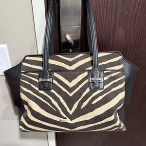 Coach Taylor L1382-F27009 Cream & Brown Zebra Print Leather & Canvas Tote/Handbag with 12” Closure Zip, bag is in mint condition
