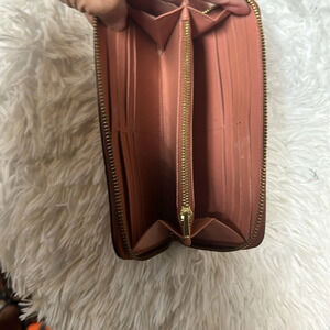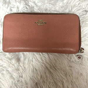 Coach Texture Accordion Zip Around Leather Wallet - Pink vintage