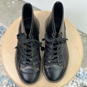 Coach Unisex Cordovan Black Leather Boxing Lace Up Round Toe Boot