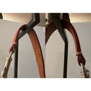 Great preloved vintage condition rare cherry red Coach demi with little flaws to note that are not normal use. This bag is canvas, leather and suede and there is some clear wear on the suede (see strap loops to see fraying) which is to be expected and will not effect how long you can wear this bag for if you care for her! Some wear on the hardware is shown on the front as well. Small mark on the Coach creed. I have attached a super cute heart extender to lengthen the strap that you can keep or remove depending on the look you’re going for! Perfect gift for the upcoming holidays!