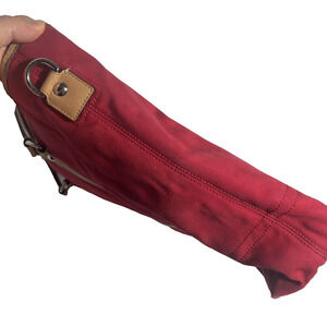 Material: Canvas body with tan leather trim