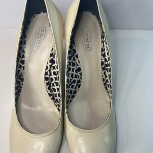 Beige Coach Dorelle wedge heels. In good used condition. Scuffs all over. See pictures.