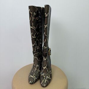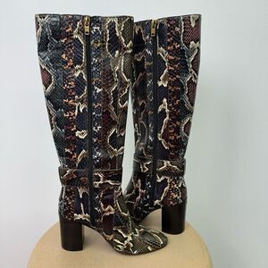 Coach Women’s Evenly Snakeskin Multicolored Oxblood Neutral Stripe Below the Knee Boot