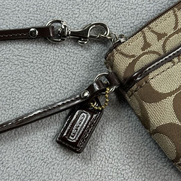 Coach Wristlet Park Signature Medium Brown Khaki Purse Turnlock Canvas Leather