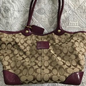 Eggplant and brown coach bag