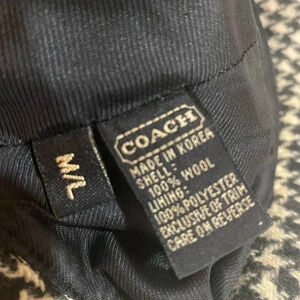Coach houndstooth fabric hat with leather trim exterior wool lining polyester M/L logo at back