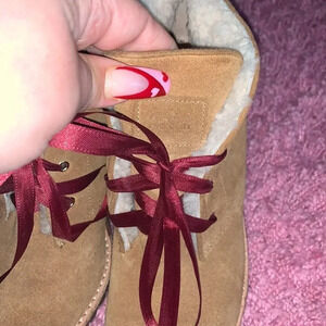 Like new. Coach Wedge Fur Booties With Ribbon Laces. No flaws.