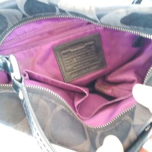 Coach bag, black. See photos of use, inside is clean, no tears in the lining. 10x12x4"