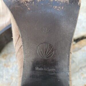 Coclico Tan Black Suede Pull On Ankle Bootie Heel Boots Size 39.5
