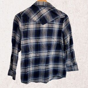 Stylish blue plaid shirt by Cody James. Features a classic design with button-up front.