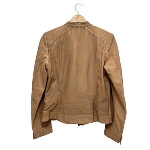 Cole Haan Lamb Leather Moto Jacket Zip Front Collarless Tan Nude Brown Women’s M
