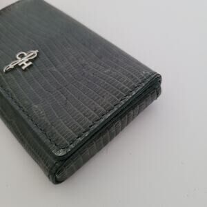 Cole Haan Leather Wallet Compact Buissnes Card Holder Mini Smake Green Small