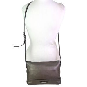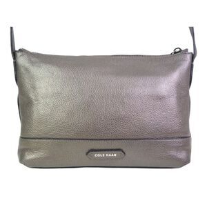 Cole Haan METALLIC BROWN REAL LEATHER ZIP MEDIUM X-BODY ORGANIZER SHOULDER BAG HANDBAG PURSE