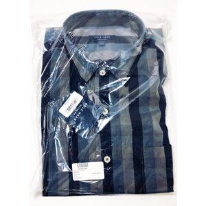 Cole Haan Mens Black Striped Spread Collar Long Sleeve Button Up Shirt Sz L New