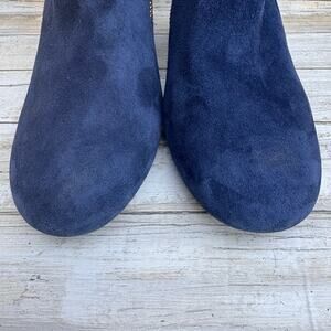 Cole Haan Saylor Grande Bootie Sz 9B Blue Suede Side Zipper Round Tow Block Heel
