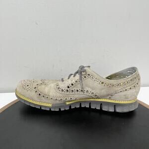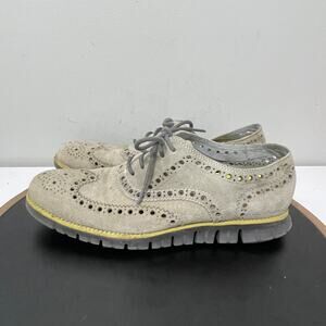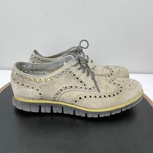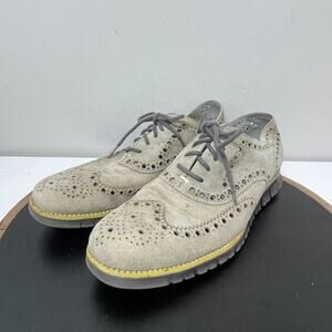 Cole Haan Suede Leather Wingtip Oxford Dress Shoes Men 9M Perforated Tan Casual