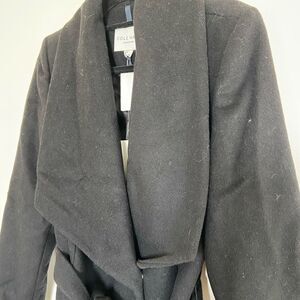 Cole Haan Wool Blend Belted Wrap Coat Black Size 12 NWT