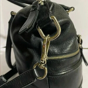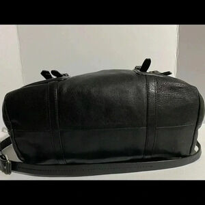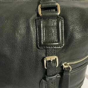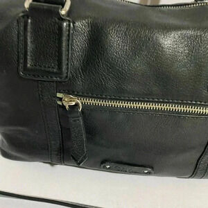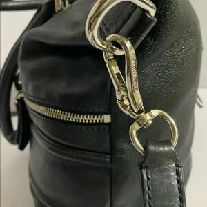 Cole Haan black leather satchel handbag with silver tone hardware main compartment 3 pockets at interior wall 1 zip closure & zip closure at top zip pocket closure at back 2 zip pocket closure at front logo at hardware minor scratches hight 9” width 17” depth 5.5” Strap drop 9” shoulder strap 22” adjustable The dimensions are based on approximately measurements before placing an order please check take a moment to view all photos using feature for a closer look