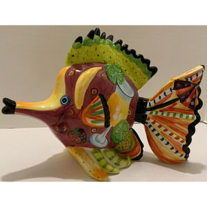 Colorful 7 Inch Tall Ceramic Fish Decorative Figure