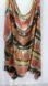 Vibrant silky scarf with multicolor stripes. Features shades of orange, green, and brown. Perfect for a stylish, casual look.