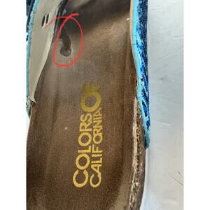 Detailed Flat Mules blue with silver sparkly threading throughout - COLORS OF CALIFORNIA