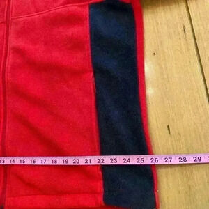 Gently Used and in great condition, Columbia red and black full zip light jacket. Measurements are in the pictures to ensure you will be happy with the fit. It is running somewhat big. No stains or rips. Excellent used condition. EUC