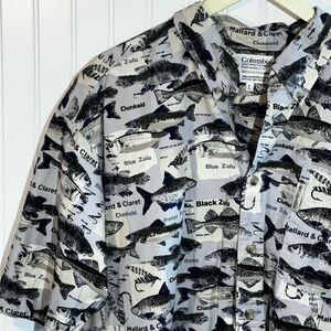 Columbia Oxford Shirt Men Large Multicolor Fish Print Short Sleeve Pocket Cotton