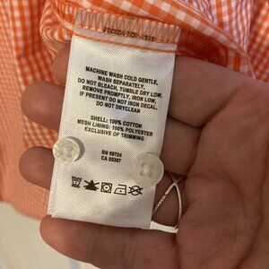 The Columbia PFG Super Bonehead Men's Clemson Tigers L/S Button Down Shirt in size Small is a stylish and comfortable option for casual or travel occasions. Made with a cotton shell and polyester lining, this shirt features a plaid pattern in orange and white, with a collared neckline and button closure. It also includes accents with the Columbia logo and is part of the Columbia Bonehead product line. With a regular fit and breathable features, this shirt is a perfect choice for men looking for a colorfully themed and lined button-up.
